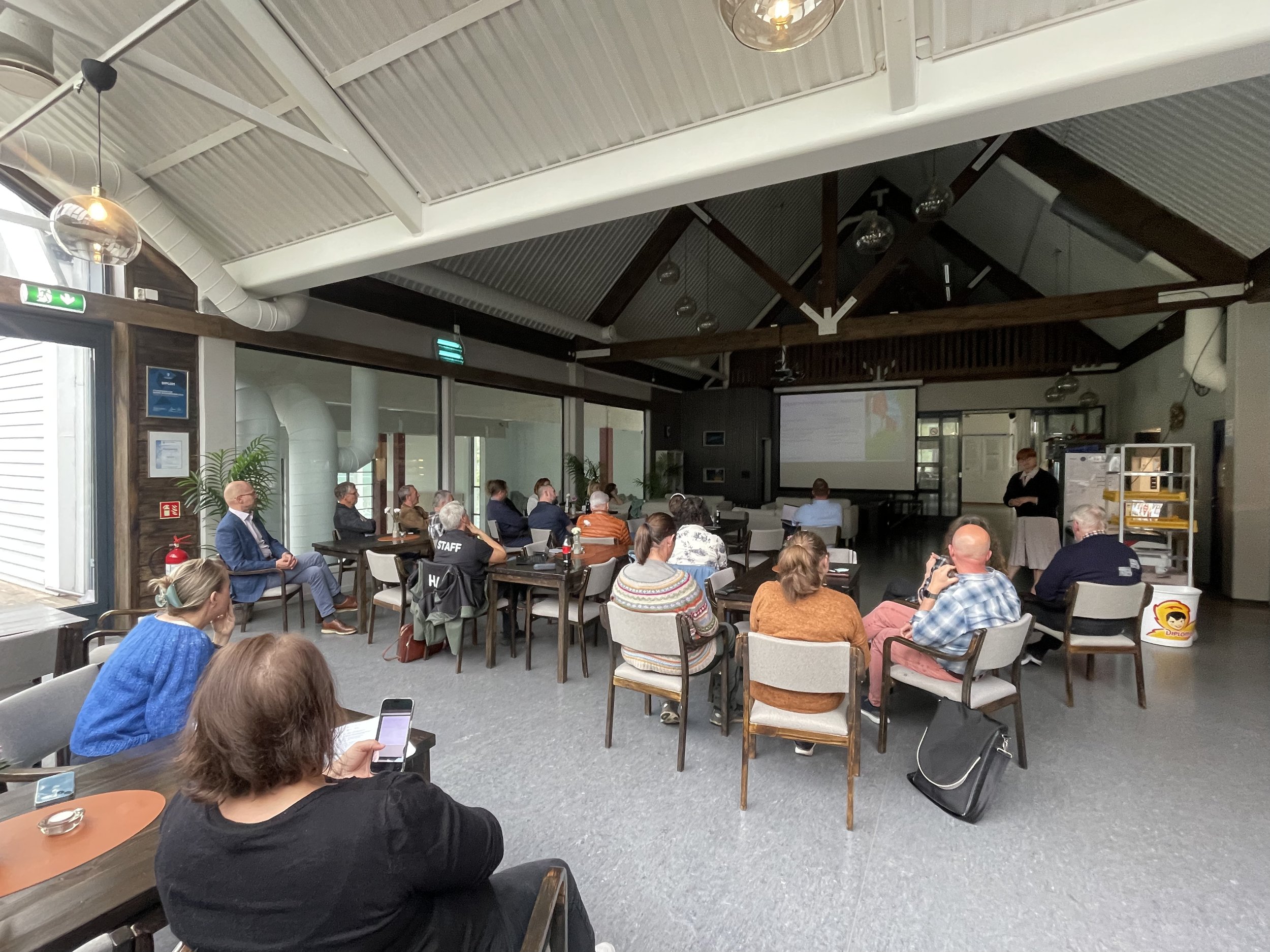 Senterleiar Agnes B. Engeset orienterte om tolegrenseanalysen og mogelegheitsstudien Vestlandsforsking utfører på folkemøtet på Skjolden 24. juni. Foto: Torunn G. Hønsi